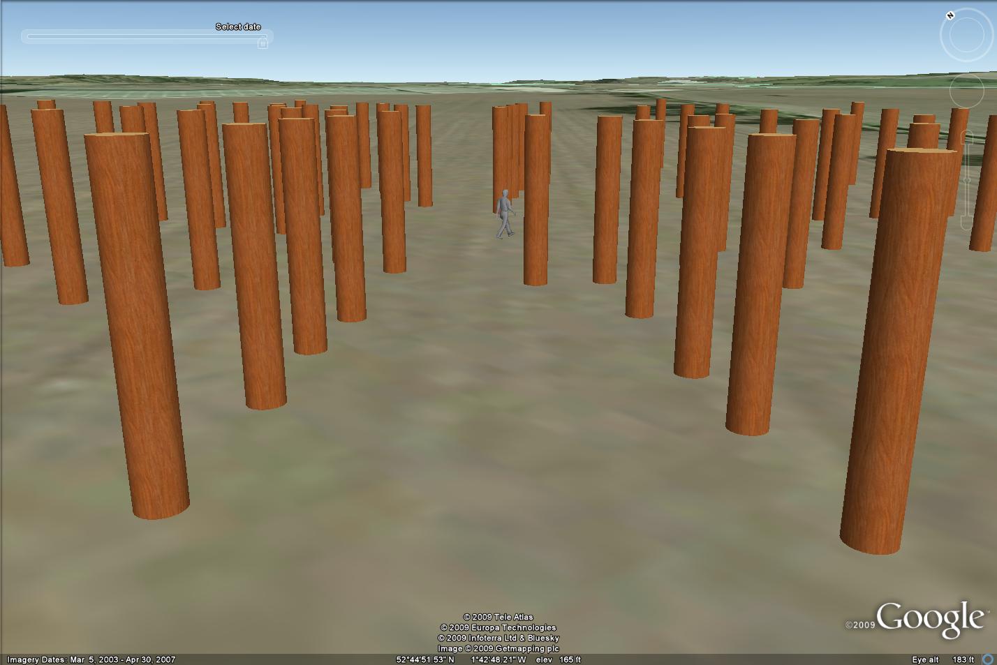 The cropmarks also suggest boundaries for the complex. To the east, a natural edge is provided by the anastomosed river Trent, which has been reconstructed as part of the Where Rivers Meet project by Neil Davies and Greg Sambrook-Smith using techniques such as coring and GPR, and historical mapping. To the west, the complex is bounded by rising ground beyond the cursus. To the north and south single and double pit alignments over 1km long run east–west, providing symmetry to the other monuments and linking the floodplain to the higher ground. On the west, around the cursus, these alignments are just 130m apart; as they extend eastwards, the area that they enclose broadens into a wide funnel up to 250m across as it meets the floodplain.