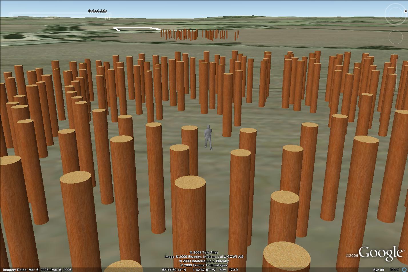 Then this all changed. A small section of the landscape was chosen for intensive activity, perhaps due to the proximity to the confluence and the linkages between lowlands and the higher areas. One of the cursus monuments had already been sited here. Now 12 radiating pit alignments were constructed to form the Sunburst Monument. Soon after, this was remodelled as a hengiform earthwork, only to be remade again, at around 2500BC, into a segmented enclosure. At the same time, a second monument was constructed just 150m away: similar in plan to the Sunburst Monument, it was dense with upright oak posts. Perhaps the hengiform monuments within the floodplain to the east at Fatholme and Borough Holme were also built at this time.
