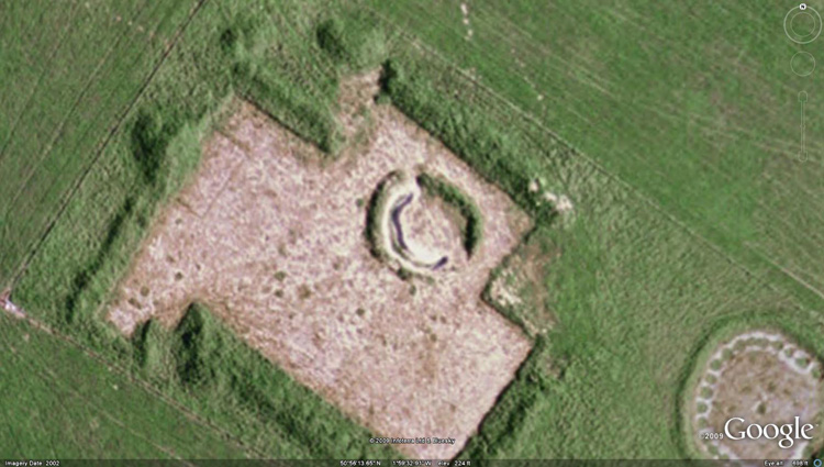 The two small henges of Wyke Down 1 and 2 were excavated in 1983-4 and 1996 respectively. The first, WD1 (see image 1), consisted of a ring of closely spaced pits 20m in diameter, each pit separated by narrow causeways with a three metre entrance gap pointing due south to the site of Chalk Pit Field previously discussed.