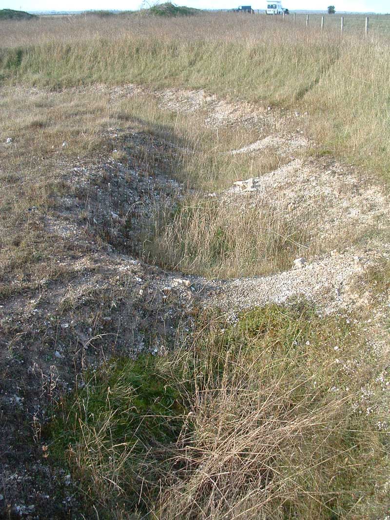 The narrow causeways had eroded allowing soil to fill the interstices giving the impression of a continuous ditch broken by a single entrance. The oval pits varied in depth from 1.35-2m and were about 2m across excepting the western terminal pit that was twice the size of the others. The material excavated from these would have been used to create an external bank, no trace of which survived.