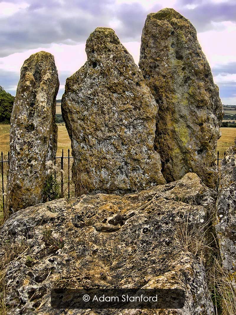 SP 2992 3084. On upland ridge 6km N of Chipping Norton, SW of the A3400 and NE of the A44. Access along minor road towards Little Rollright between the A3400 and the A44. Parking is available in the lay-by at the Rollright Stones.