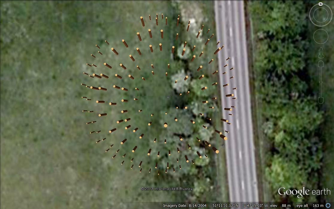 E) A geophysical survey conducted in 2003 revealed the massive henge ditch as a weak but well-defined broad curvilinear anomaly up to 15m in width, showing distinct variation in width or ‘scalloping’ around the circuit. The magnetic response from the section of ditch south-west of the entrance may be a sign of possible re-cutting of the ditch circuit. The henge ditch deviates from it line at a curiviliner anomaly that perhaps represents either a much wider original entrance or the starting point for the construction of the henge bank. Numerous probable archaeological features are detectable by weak magnetic responses within the henge enclosure and adjacent to the entrances.