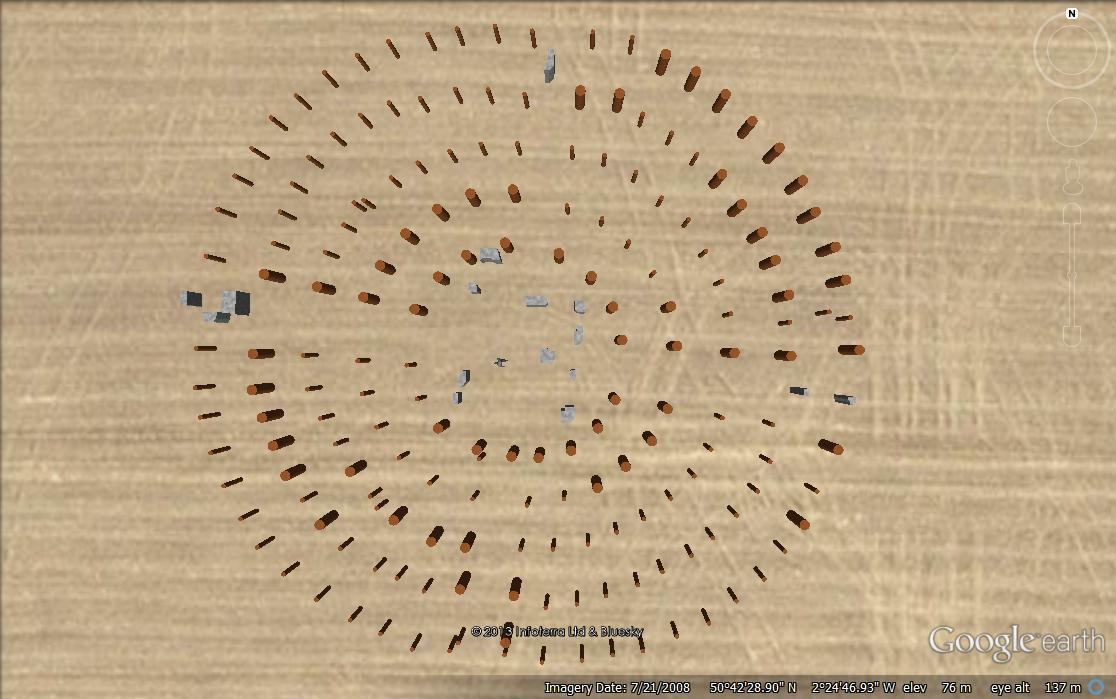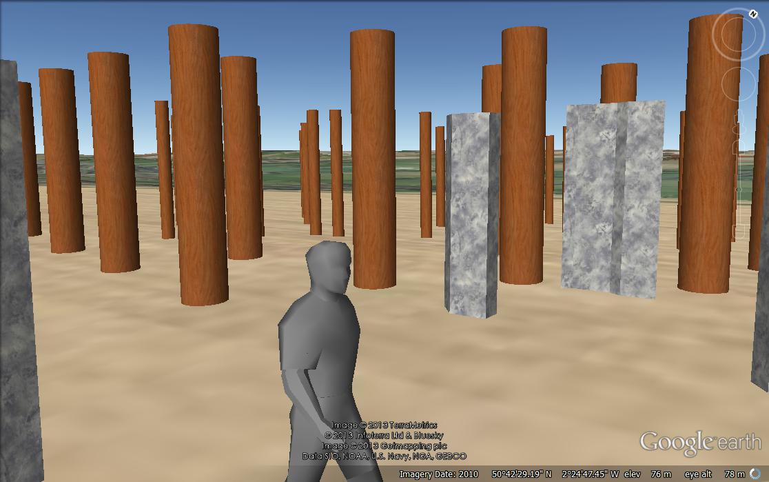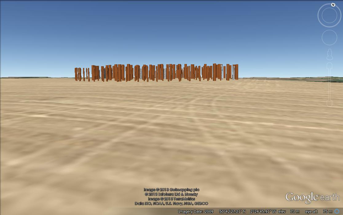 The geophysical survey also turned up an unexpected bonus – a massive and continuous palisade running within and concentric to the henge ditch. Enclosing an area measuring circa 270m east-west by 245m north-south, the palisade trench would have supported a wall of timbers perhaps 6 metres high, yet only two extremely narrow entrances could be found through this enormous timber barrier.”